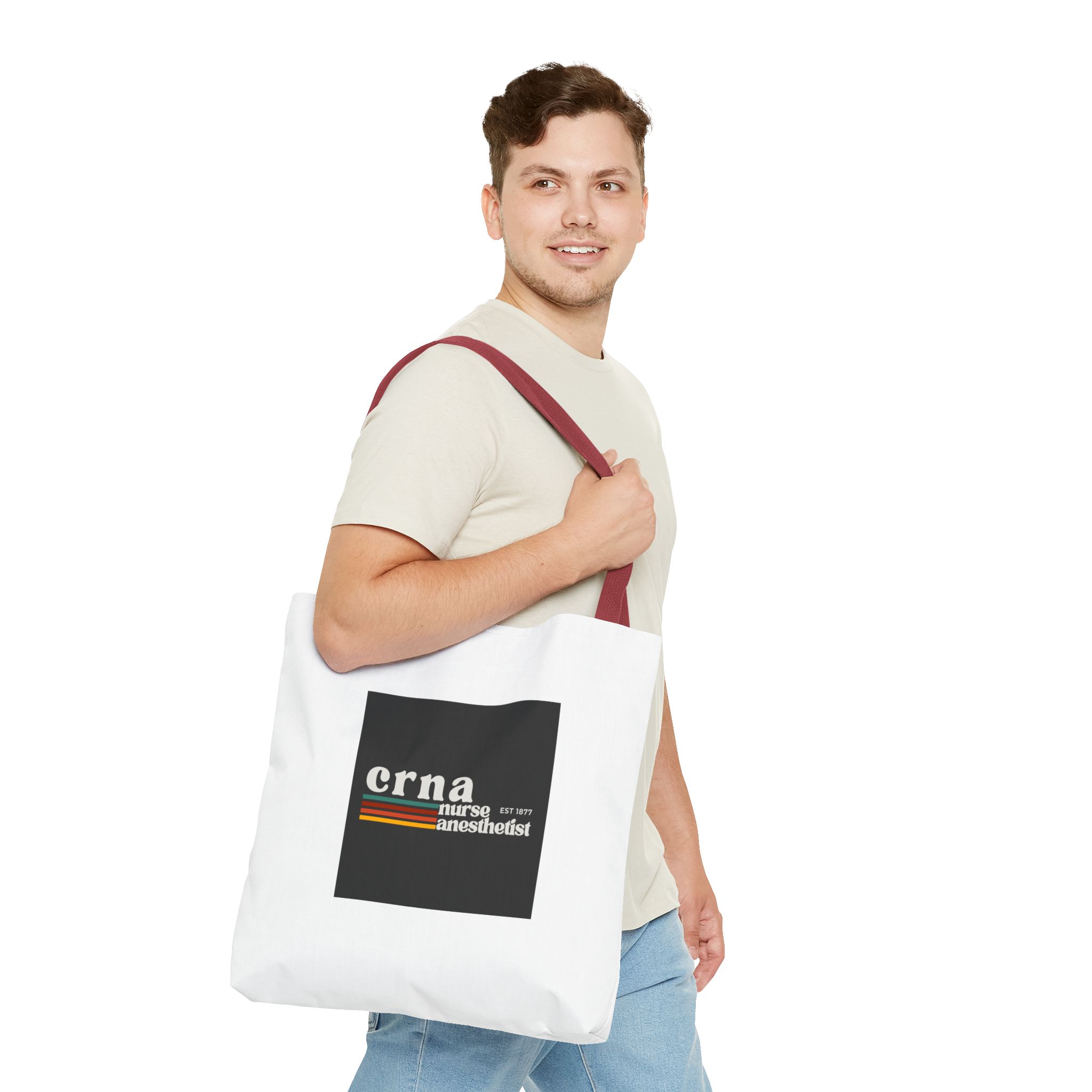 Available in 3 sizes to add both functionality and style, these custom-printed tote bags come with multiple handle colors. Made with spun polyester, these bags feature double-stitched seams, cotton webbing straps, and nonwoven laminate lining for high-end durability.